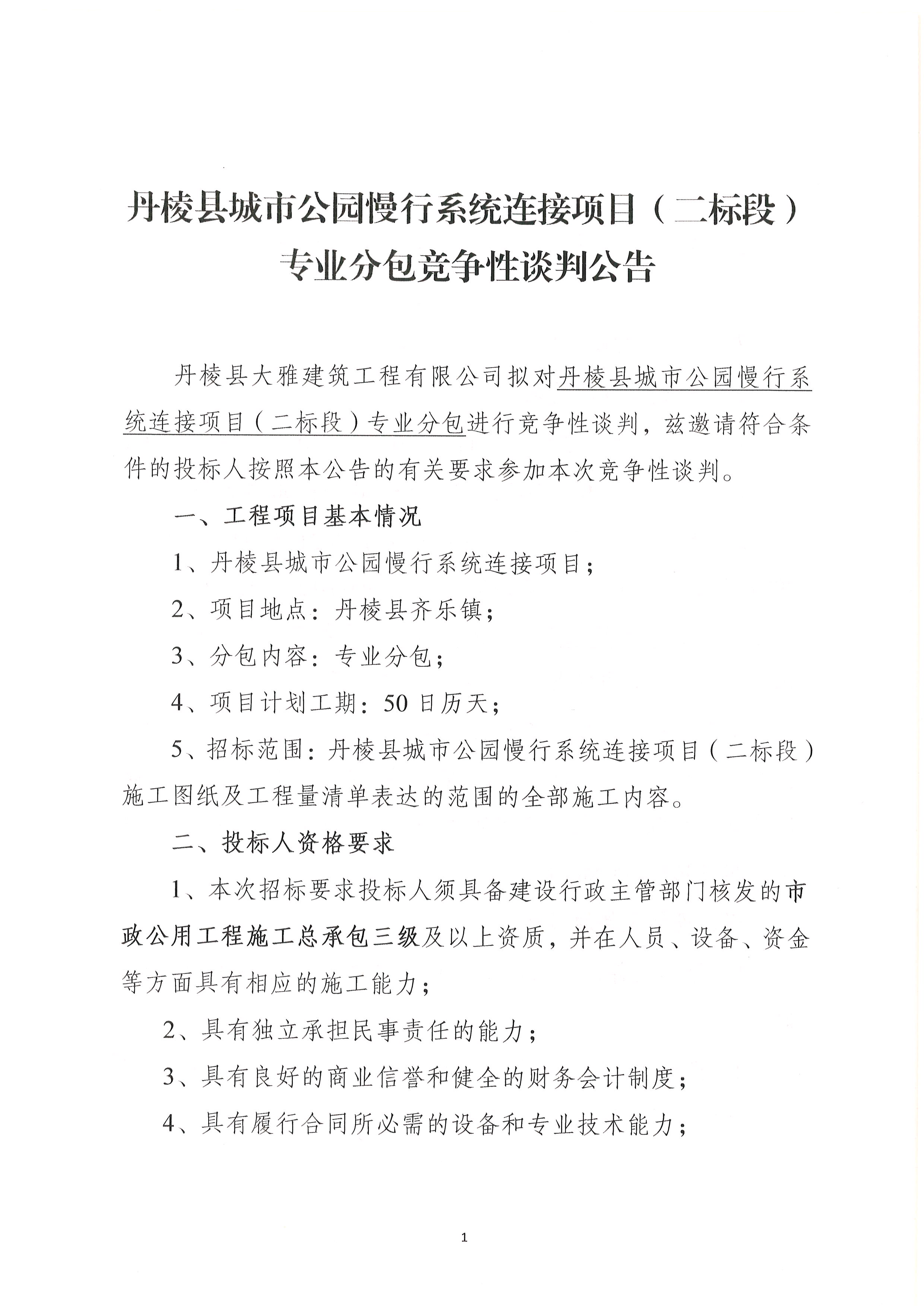 【大雅建筑公司】丹棱縣城市公園慢行系統(tǒng)連接項(xiàng)目(二標(biāo)段)專(zhuān)業(yè)分包競(jìng)爭(zhēng)性談判公告