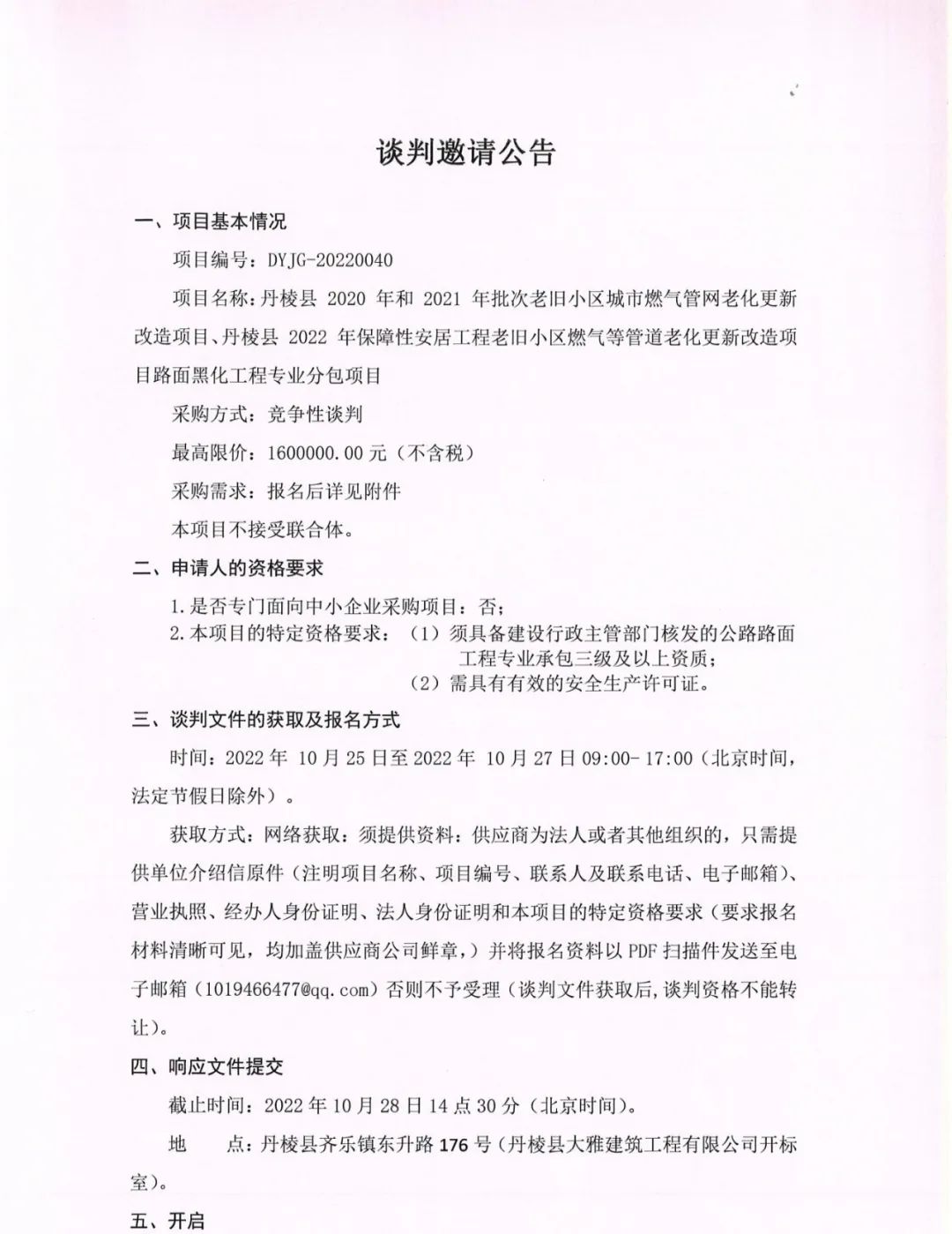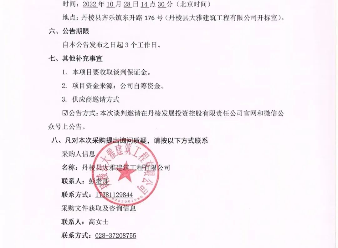 丹棱縣 2020 年、 2021 年、 2022 年保障性安居工程老舊小區(qū)燃?xì)獾裙艿览匣赂脑祉椖柯访婧诨こ虒I(yè)分包項目談判邀請公告