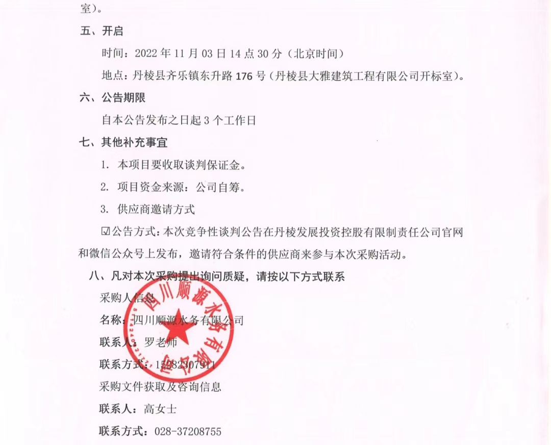 丹棱縣農(nóng)村自來水管道、供水設(shè)備日常搶修維護(hù)和零星安裝勞務(wù)用工項(xiàng)目談判邀請公告