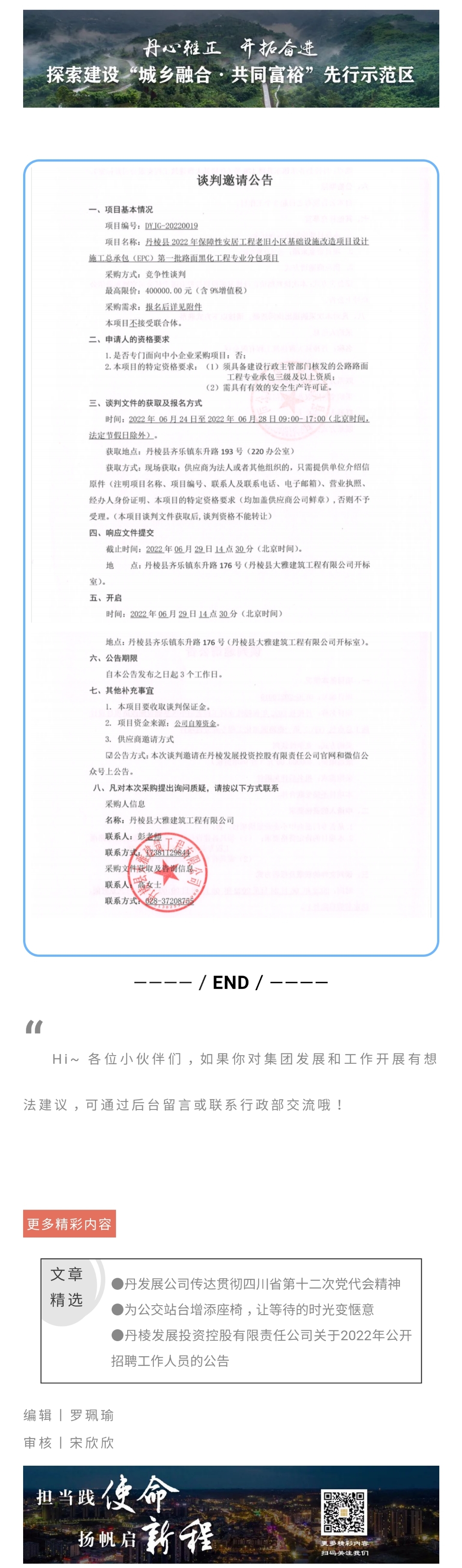 丹棱縣2022年保障性安居工程老舊小區(qū)基礎(chǔ)設(shè)施改造項目設(shè)計施工總承包(EPC)第一批路面黑化工程專業(yè)分包項目談判邀請公告