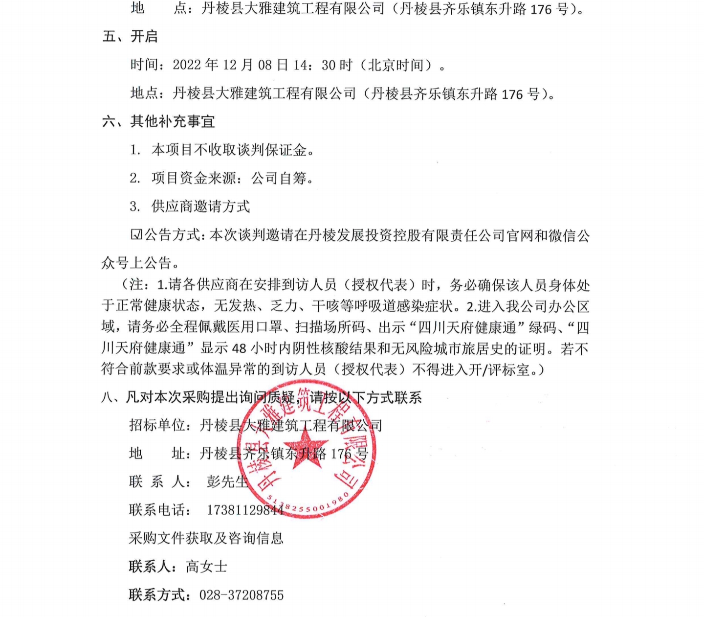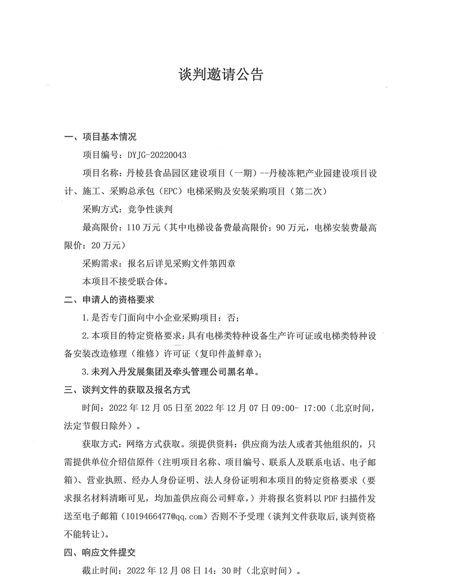 丹棱縣食品園區(qū)建設(shè)項目 (一期)--丹樓凍把產(chǎn)業(yè)園建設(shè)項目設(shè)計、施工、采購總承包 (EPC) 電梯采購及安裝采購項目 (第二次)談判邀請公告