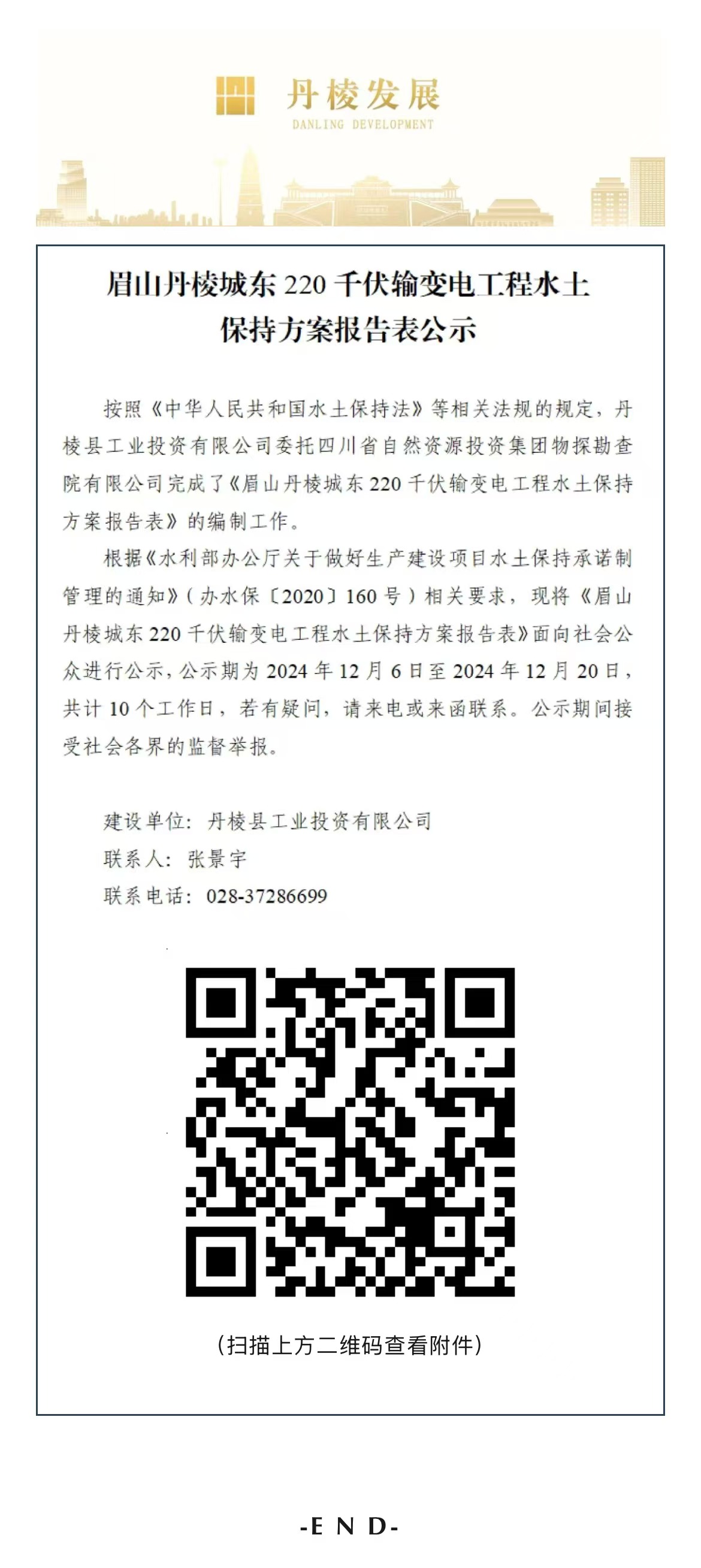 眉山丹棱城東220千伏輸變電工程水土 保持方案報(bào)告表公示