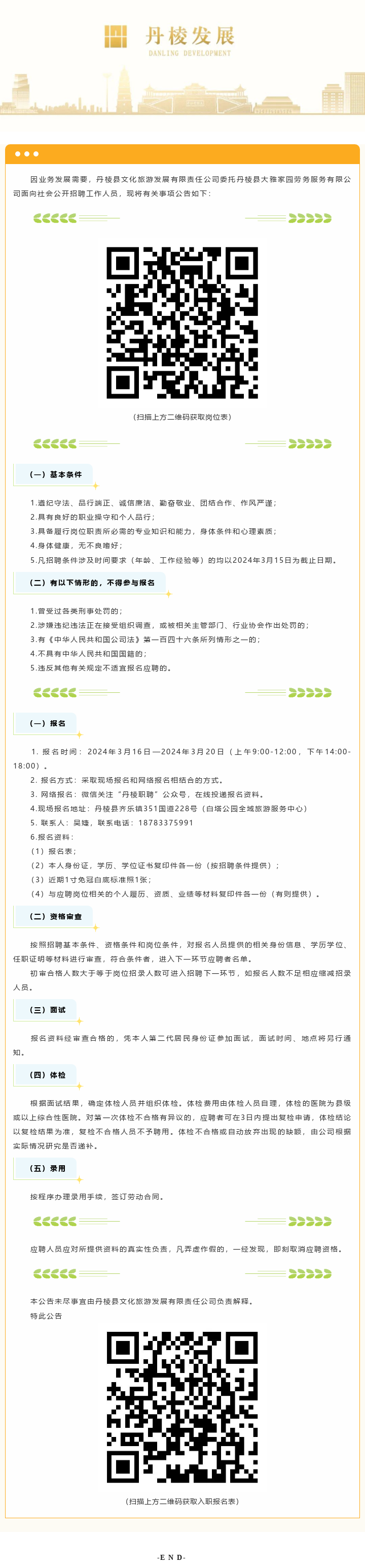 丹棱縣大雅家園勞務(wù)服務(wù)有限公司關(guān)于為丹棱縣文化旅游發(fā)展有限責(zé)任公司公開招聘32名勞務(wù)派遣人員的公告