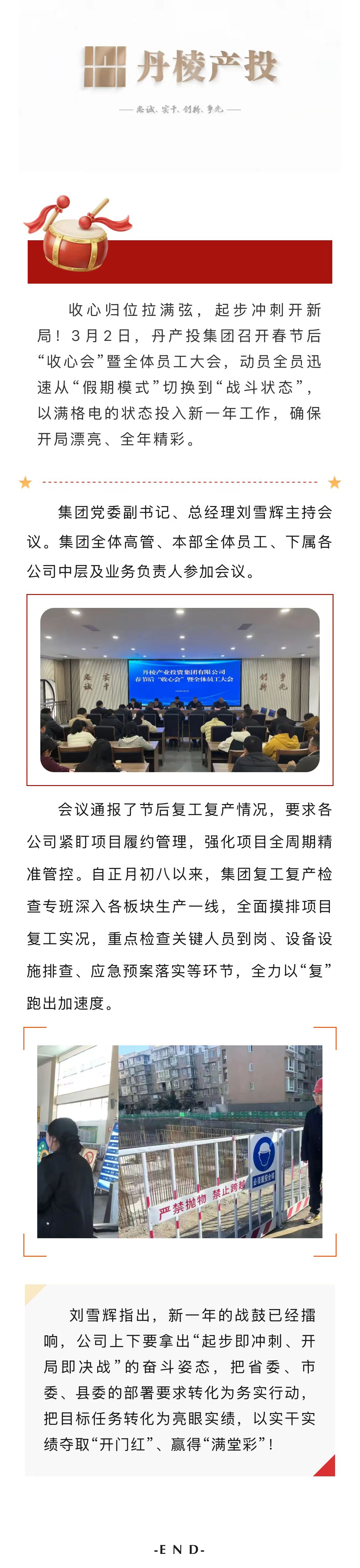 收心歸位拉滿(mǎn)弦 起步?jīng)_刺開(kāi)新局——丹產(chǎn)投集團(tuán)召開(kāi)春節(jié)后“收心會(huì)”暨全體員工大會(huì)