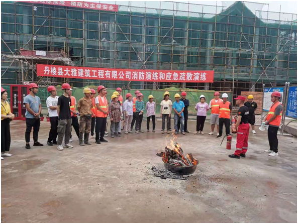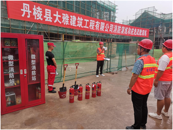 為進一步提高丹棱縣大雅建筑工程有限公司(以下簡稱“縣大雅建筑公司”)全體工作人員消防安全意識和應急處置能力,6月24日,我司在仁美鎮(zhèn)雙橋社區(qū)農(nóng)副產(chǎn)品交易中心項目(以下簡稱“雙橋項目”)施工現(xiàn)場組織開展了一場消防應急演練,此次演練邀請到丹棱發(fā)展投資控股有限責任公司相關(guān)領(lǐng)導和部室人員觀摩指導。