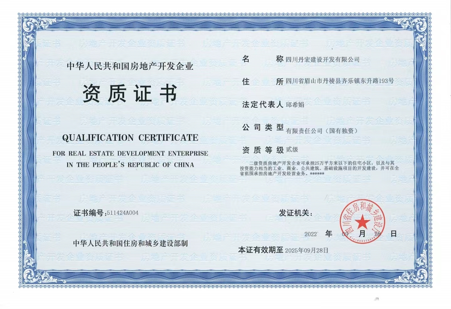 近日,丹發(fā)展集團(tuán)下屬的四川丹宏建設(shè)開發(fā)有限公司順利通過了四川省住房和城鄉(xiāng)建設(shè)廳資格審核,成功獲取了房地產(chǎn)開發(fā)二級資質(zhì)。標(biāo)志著丹宏公司可承擔(dān)建筑面積25萬平方米以下項(xiàng)目的開發(fā)建設(shè),并可在全省范圍承擔(dān)房地產(chǎn)開發(fā)經(jīng)營業(yè)務(wù),為進(jìn)一步擴(kuò)大建設(shè)規(guī)模及開發(fā)區(qū)域奠定了堅(jiān)實(shí)基礎(chǔ)。