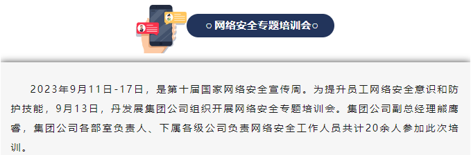 【網(wǎng)絡(luò)安全宣傳周】 丹發(fā)展集團(tuán)公司開(kāi)展網(wǎng)絡(luò)安全專(zhuān)題培訓(xùn)會(huì)