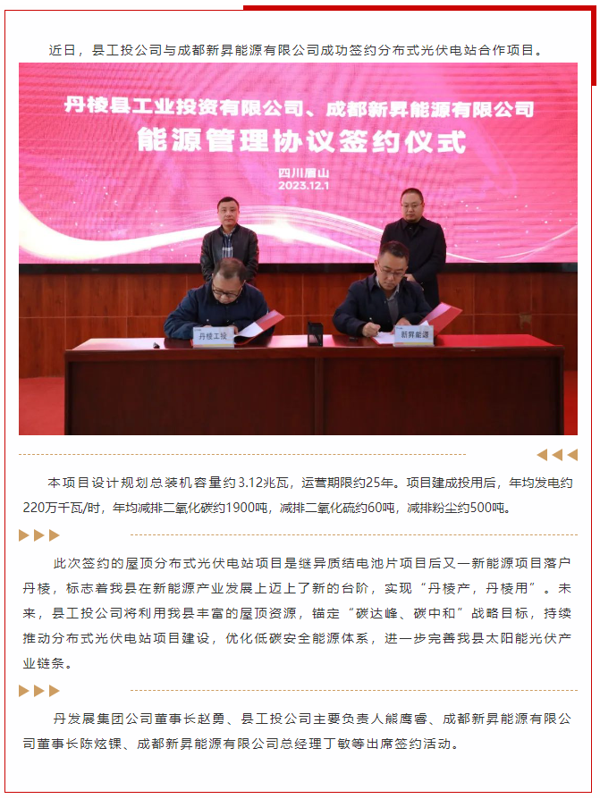 【縣工投公司】分布式光伏電站合作項目成功簽約