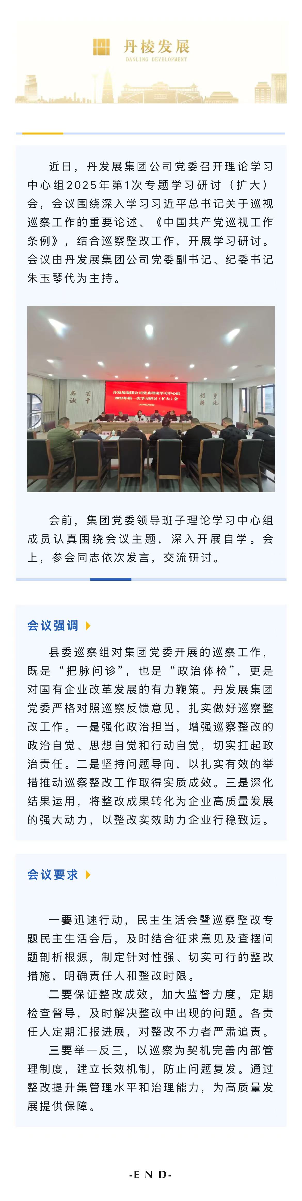 丹發(fā)展集團(tuán)公司黨委召開理論學(xué)習(xí)中心組2025年第1次專題學(xué)習(xí)研討(擴(kuò)大)會(huì)