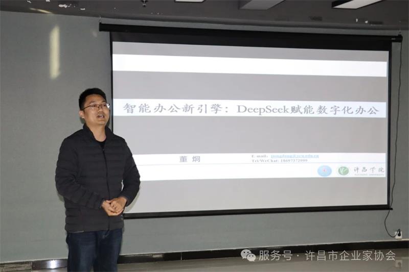 2月24日下午,許昌市企業(yè)家協(xié)會(huì)邀請(qǐng)?jiān)S昌學(xué)院副教授、董炯博士,為協(xié)會(huì)會(huì)員帶來(lái)了一場(chǎng)關(guān)于DeepSeek的精彩講座。本次活動(dòng)旨在幫助企業(yè)了解人工智能前沿技術(shù),把握行業(yè)發(fā)展趨勢(shì),提升企業(yè)數(shù)字化轉(zhuǎn)型能力。
