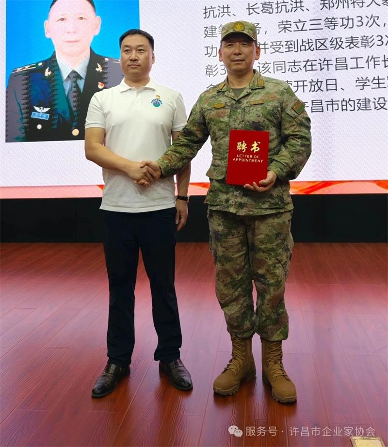 活動第三項(xiàng),在莊重的授聘儀式環(huán)節(jié),許昌市企業(yè)家協(xié)會黨支部書記何志東向張軍偉同志頒發(fā)了"許昌市企業(yè)家協(xié)會國防教育特聘專家"聘書。接過聘書的張軍偉副參謀長發(fā)表了熱情洋溢的講話。他首先感謝協(xié)會的信任,并表示:"作為國防教育特聘專家,我將充分發(fā)揮自身優(yōu)勢,通過開展專題講座、軍事體驗(yàn)等活動,幫助企業(yè)家增強(qiáng)國防意識,培養(yǎng)家國情懷。"