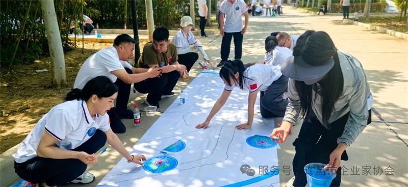 次日開展的商業(yè)沙盤演練成為智慧碰撞的舞臺。"達(dá)芬奇密碼"項(xiàng)目中,各團(tuán)隊(duì)通過SWOT分析、資源調(diào)配等專業(yè)工具,深刻領(lǐng)悟到市場預(yù)判與戰(zhàn)略執(zhí)行的重要性。在"納斯卡巨畫"創(chuàng)作環(huán)節(jié),全體成員分工協(xié)作,歷時3小時完成了面積達(dá)50平方米的協(xié)會會徽巨作。當(dāng)畫卷徐徐展開時,無人機(jī)航拍記錄下這一震撼時刻,象征著企業(yè)家們凝心聚力、共繪藍(lán)圖的決心。