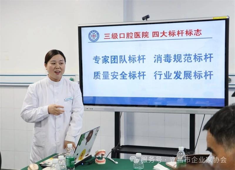會議特別邀請許昌皓博口腔醫(yī)院醫(yī)務科科長王川為與會企業(yè)家?guī)?口腔保健知識"專題分享。王川從專業(yè)角度深入淺出地講解了口腔健康的重要性、口腔與全身健康的關聯(lián)、日??谇蛔o理要點以及醫(yī)療無菌操作規(guī)范等內(nèi)容,為企業(yè)家們上了一堂生動的健康管理課。
