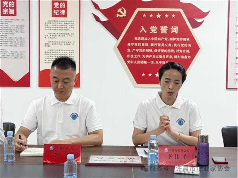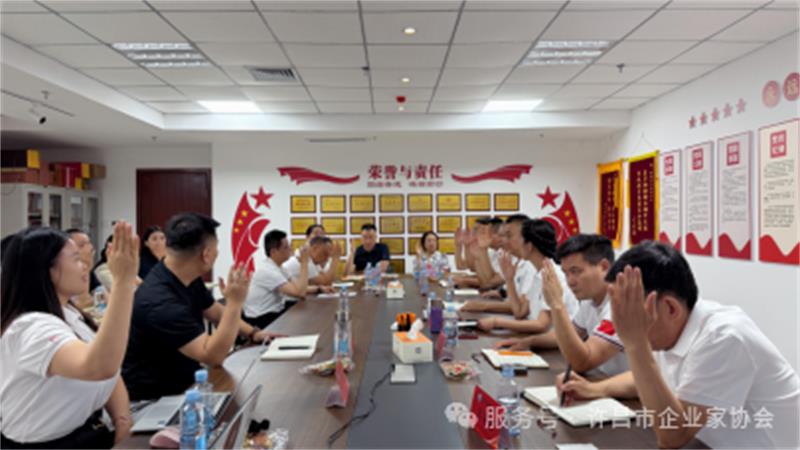 本次會議迎來了兩家新申請入會的企業(yè)家。協(xié)會黨支部書記何志東對兩家新申請入會的企業(yè)家表示熱烈歡迎,并強調(diào)協(xié)會始終秉持"服務企業(yè)、促進發(fā)展"的宗旨,為會員搭建資源共享、合作共贏的平臺。他寄語新會員要積極參與協(xié)會活動,共同為許昌市經(jīng)濟發(fā)展貢獻力量,同時希望新老會員加強交流,攜手推動協(xié)會建設邁上新臺階。