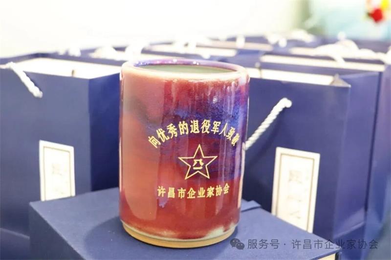 協(xié)會常務秘書長范文彥宣讀表彰決定,對優(yōu)秀退役軍人企業(yè)家進行表彰。在激昂的軍樂聲中,受表彰人員依次上臺,莊嚴宣讀退役誓言,并接受頒獎嘉賓邵勝杰、黃玉霞頒發(fā)的榮譽證書?,F(xiàn)場還特別推出“八一”慶祝蛋糕,以甜蜜的方式向退役軍人致以崇高敬意。企業(yè)家協(xié)會為本次活動定制了鈞瓷筆筒,送給最可愛的退役軍人。