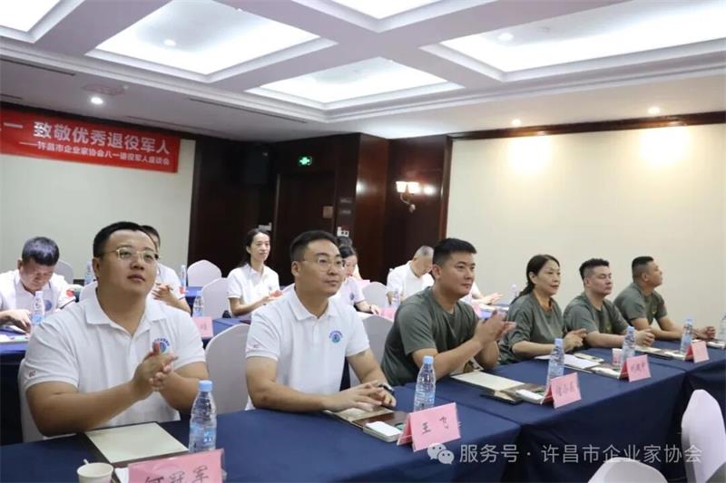 許昌市退役軍人事務局軍轉(zhuǎn)科科長邵勝杰現(xiàn)場宣講最新優(yōu)撫政策,強調(diào)將持續(xù)優(yōu)化服務,為退役軍人保駕護航。在交流座談環(huán)節(jié),與會人員圍繞“軍民融合”“企業(yè)創(chuàng)新”等話題展開熱烈討論,共謀發(fā)展良策。