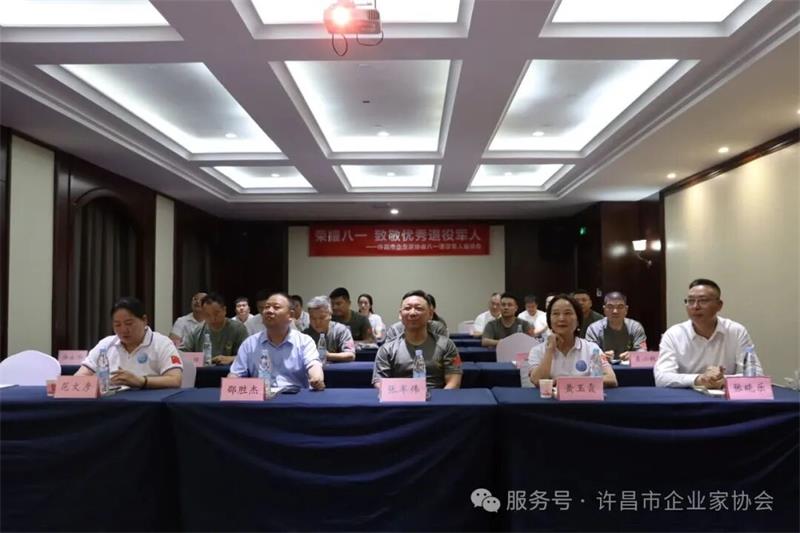 在“八一”建軍節(jié)來臨之際,為弘揚軍人精神,表彰優(yōu)秀的退役軍人,7月27日上午,許昌市企業(yè)家協(xié)會在花都溫泉隆重舉行“八一”表彰座談會。市退役軍人事務局領導、協(xié)會領導、退役軍人企業(yè)家代表、軍屬及相關部門負責人齊聚一堂,共慶建軍佳節(jié),暢談使命擔當。