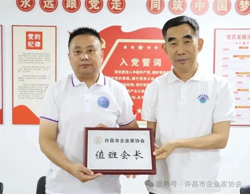 2025年8月5日,許昌市企業(yè)家協(xié)會(huì)在協(xié)會(huì)會(huì)議室召開(kāi)七月份與八月份輪值會(huì)長(zhǎng)交接會(huì)議,會(huì)議伊始,七月份值班會(huì)長(zhǎng)與八月份值班會(huì)長(zhǎng)進(jìn)行了莊嚴(yán)的值班交接儀式,標(biāo)志著協(xié)會(huì)工作進(jìn)入新階段。